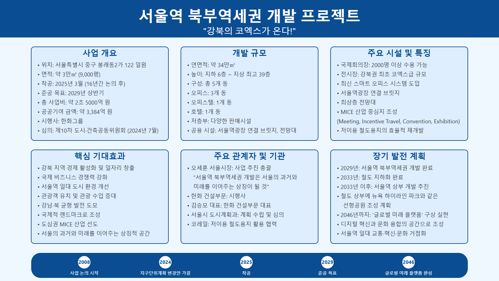 💡 TIP: 서울역 북부역세권 개발 사업의 진행 상황은 서울시 공식 홈페이지나 한화그룹 홈페이지에서도 확인하실 수 있습니다. 관심 있으신 분들은 주기적으로 확인해보세요!